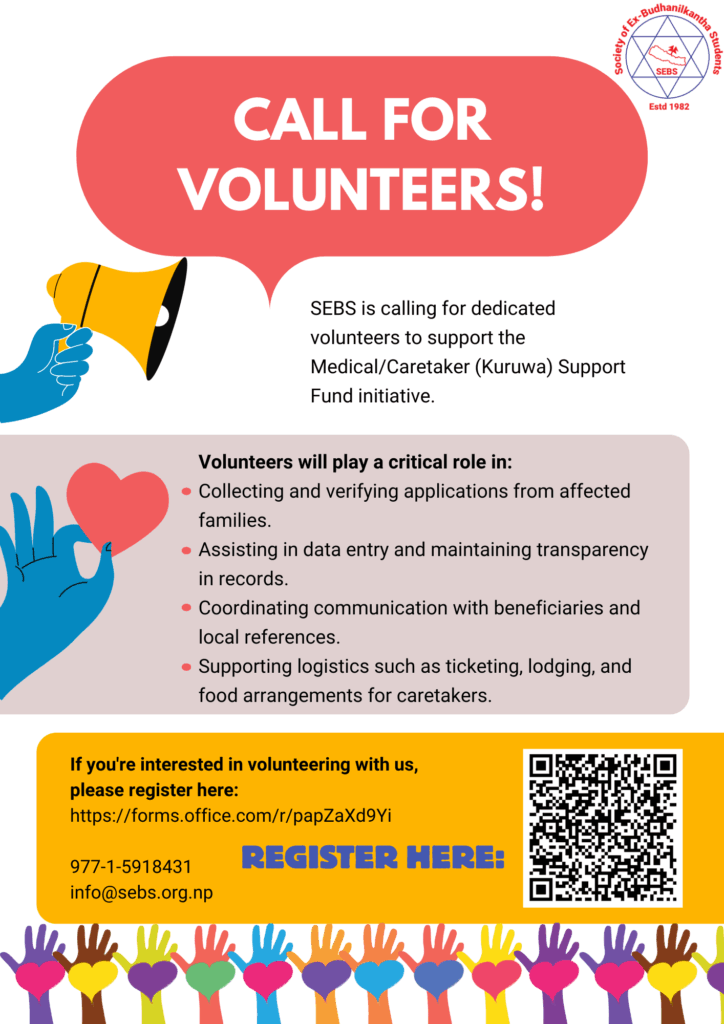 SEBS is seeking dedicated volunteers to support families affected by the recent incident (Gen Z movements).